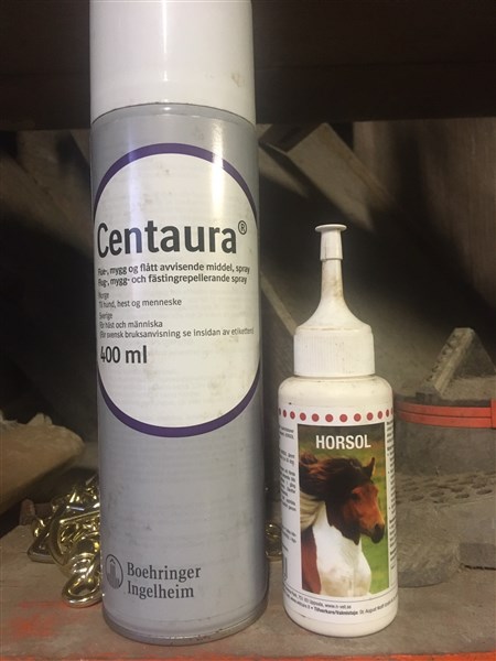 Jag använder en insektsspray som heter Centaura och kombinerar med horsol som lindrar klåda. Du kan köpa båda produkterna av mig.